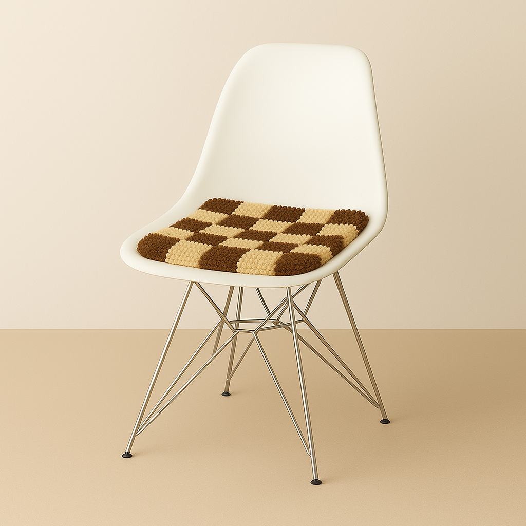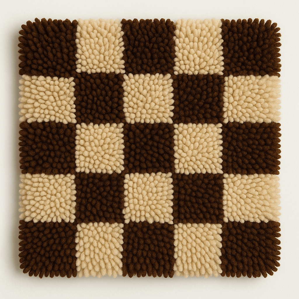 Latch Hook Seat Rug - Checkered Brown & Beige - ♻️ Upcycled Yarn