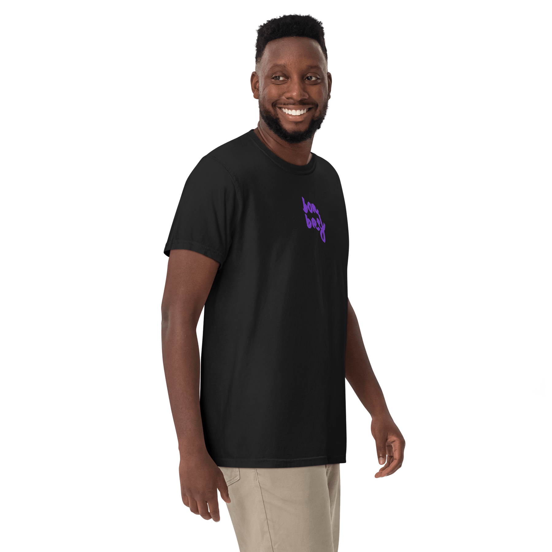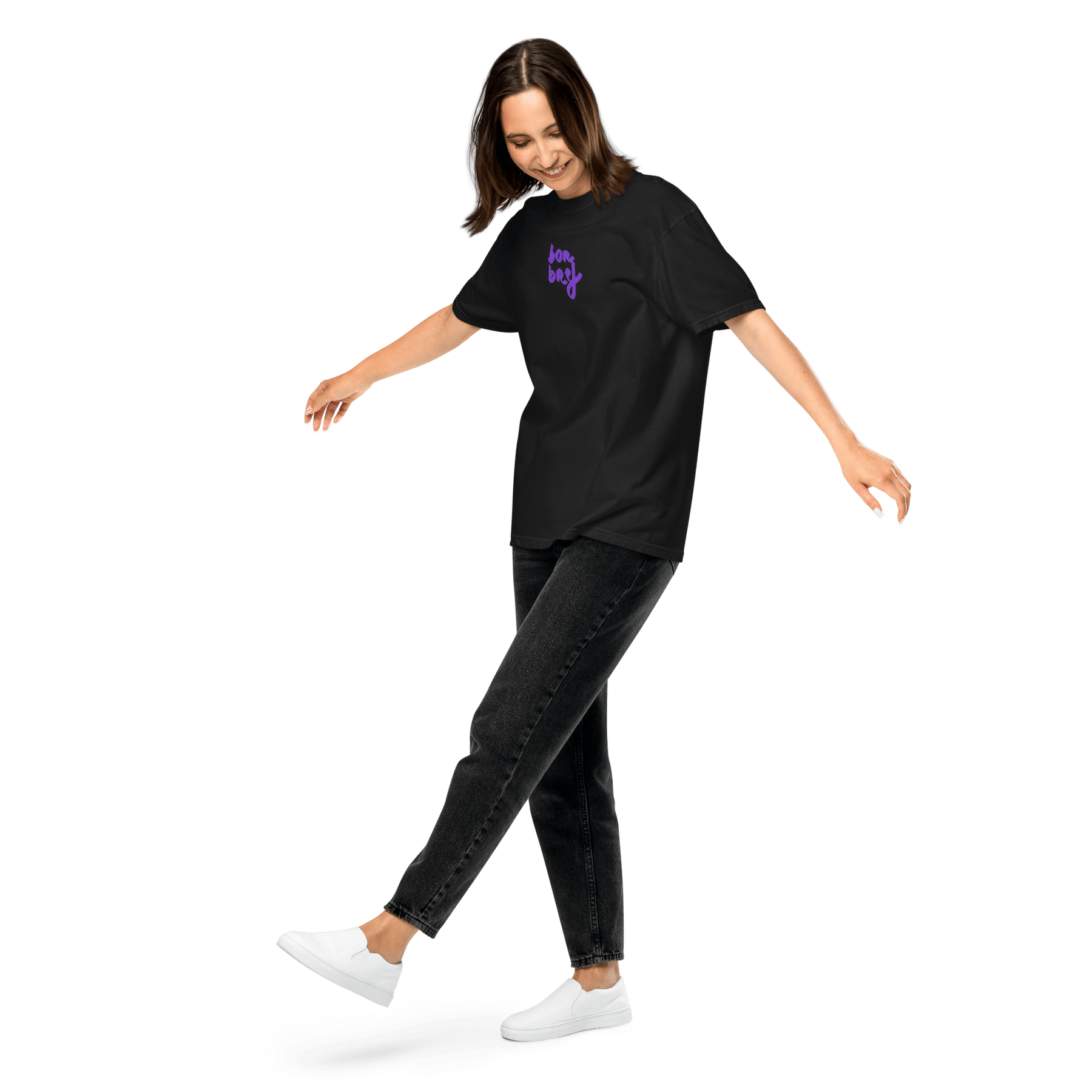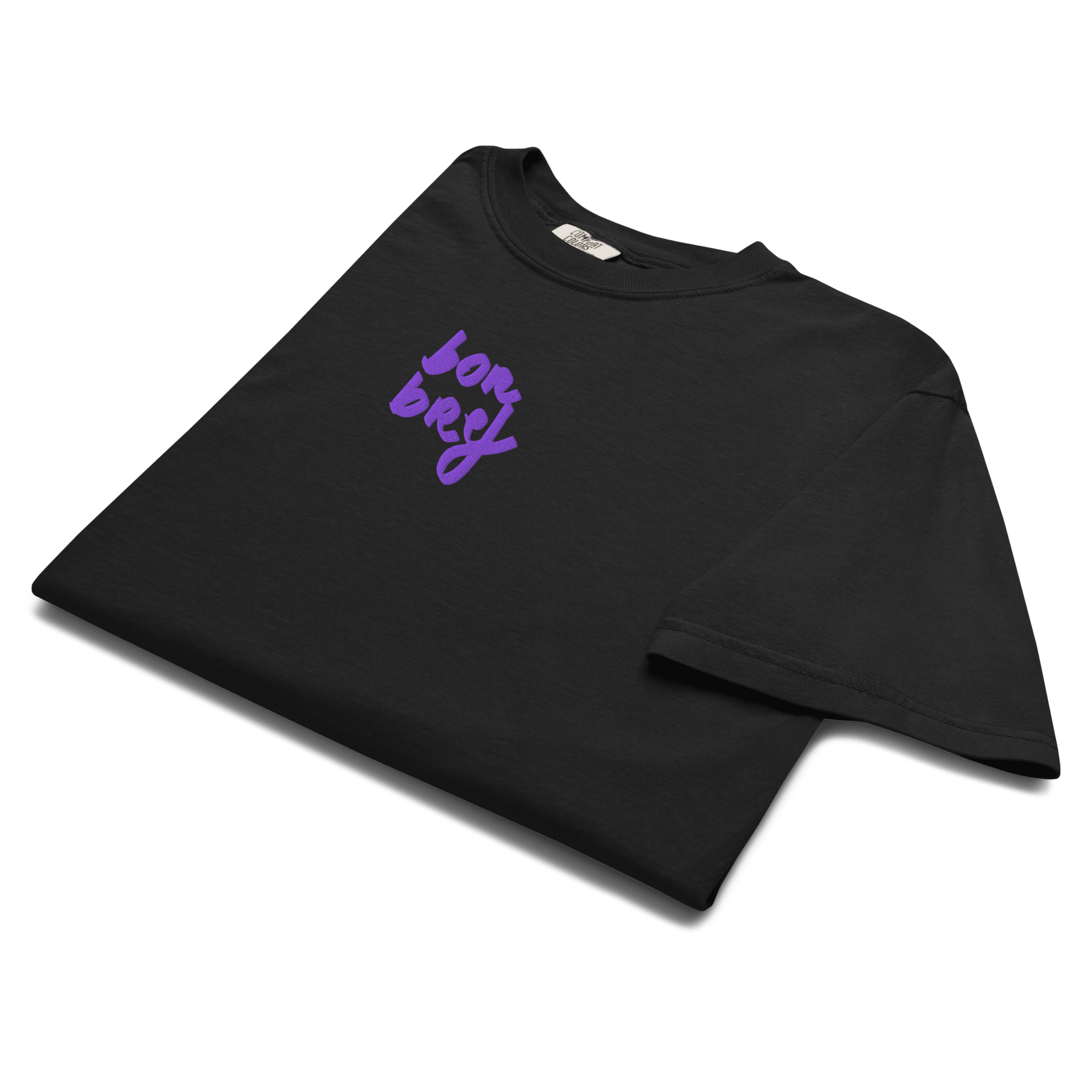 Bon bref T-Shirt, T-Shirt mit französischem Slogan, sarkastisches T-Shirt, lila Stickerei, schwarzes besticktes Hemd, T-Shirt mit strukturiertem Ausschnitt, Hemd mit Stehkragen, schweres Baumwoll-T-Shirt, stückgefärbtes Hemd, Mode mit Seitenblick, passiv-aggressive Mode, Flatpackpony T-Shirt, gewaschenes schwarzes T-Shirt, lässige Mode, T-Shirt mit ironischem Slogan, freche Stickerei, minimalistische Streetwear, hochwertige Basics, Unterzieh-T-Shirt, Mode auf Bestellung
