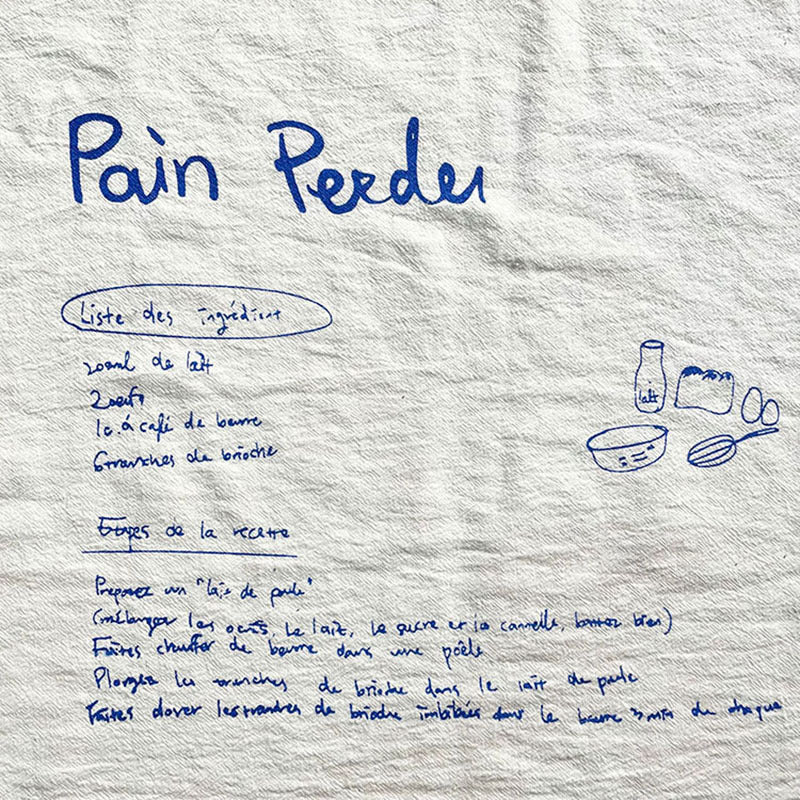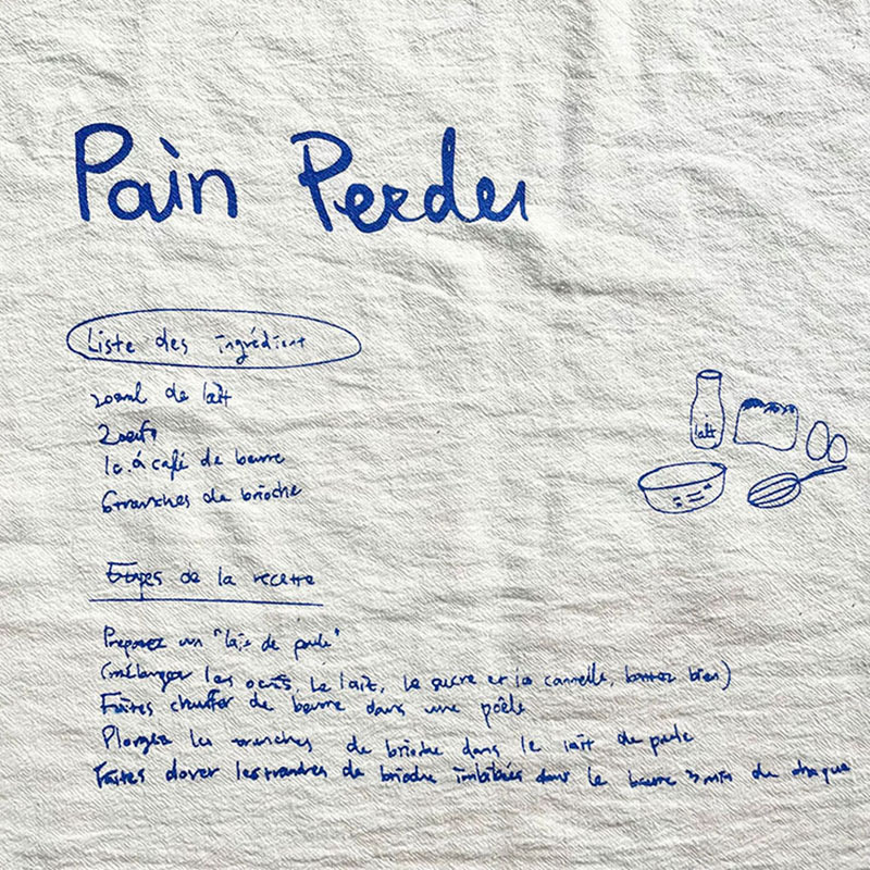Bring a touch of Paris to your table! This 100% cotton placemat is printed with the classic French Pain Perdu (French toast) recipe—stylish, practical, and oh-so-charming. Perfect as a placemat, wall cloth, or photo backdrop.