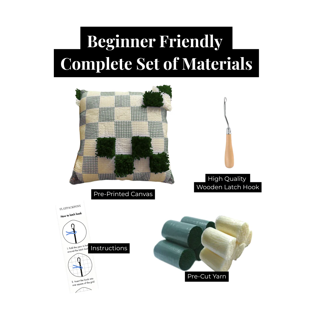 Everything you need to start right away — pre-cut yarn, canvas, printed pattern, latch hook tool, and clear instructions. No extra shopping needed, it’s all in the box.