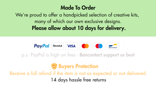 Hi, I’m Oona. I started this webshop because I couldn’t find the kind of DIY kits I actually wanted to display - something design-forward (not just two dolphins jumping toward each other).